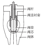 為保證閥門開(kāi)度滿足要求,原閥蓋襯套靠閥芯側(cè)沿軸向去除39mm,加工面最大粗糙度為6.3μm。打磨氧化皮后,測(cè)量確認(rèn)閥桿彎曲度、各部套間隙、閥門行程合格且閥芯活動(dòng)靈活。對(duì)閥芯、閥座進(jìn)行檢查,密封線合格后整體回裝。