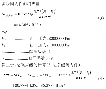 由于介質(zhì)為汽體,多級(jí)節(jié)流降壓相當(dāng)于節(jié)流減壓排氣消聲器,故消聲量的計(jì)算按照多級(jí)降壓消聲器的公式計(jì)算。