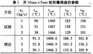 通過試驗研究和理論分析得知:最大誤差不超過5%,理論值與實驗值基本吻合。為研究方便,可進一步采用對流換熱理論分析不同槽道尺寸及不同冷卻水流量下閥座的換熱特性。